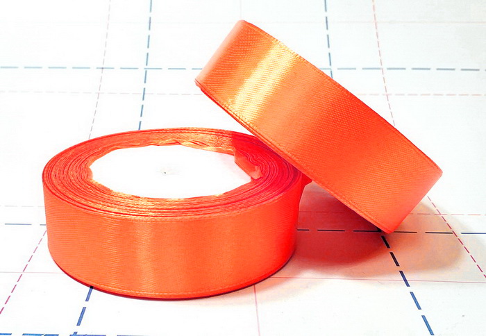 Назад 110 Лента атласная 25мм 23м (+-1м) оттенок оранжевый неон