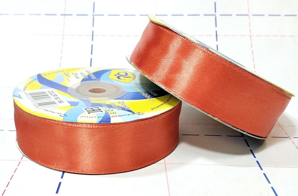 Назад 111 Лента атласная 25мм 33м (+-1м) оттенок светло-кирпичного