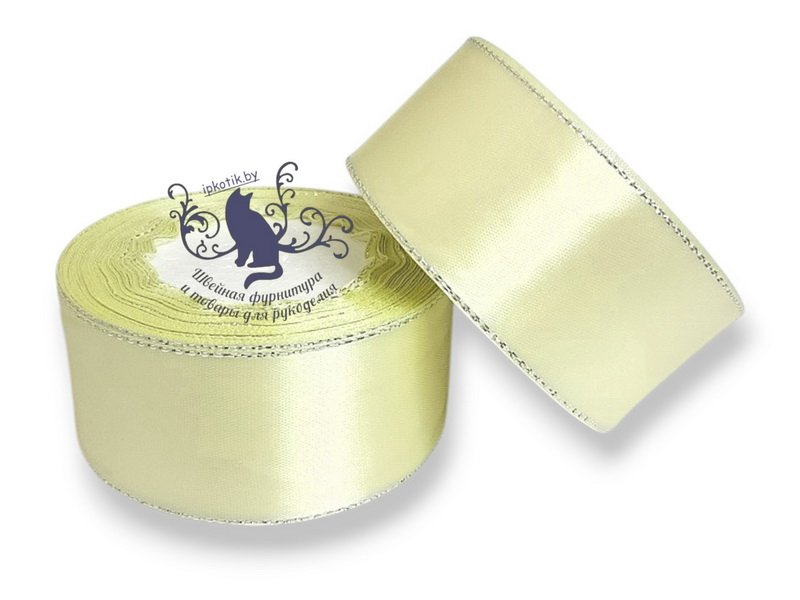 - 12 Лента атласная с люрексом 40мм серебро 23м/боб (+-1м) Ваниль
