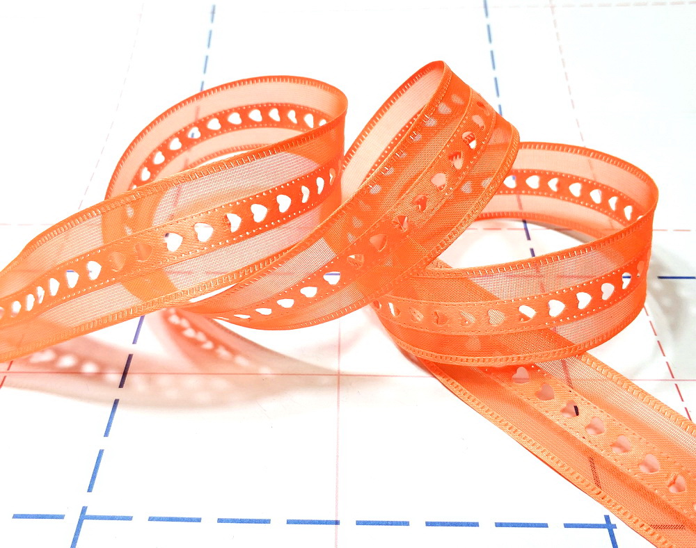 - 12 Лента декоративная 25мм Сердце-2 18,3м/боб Оранжевый