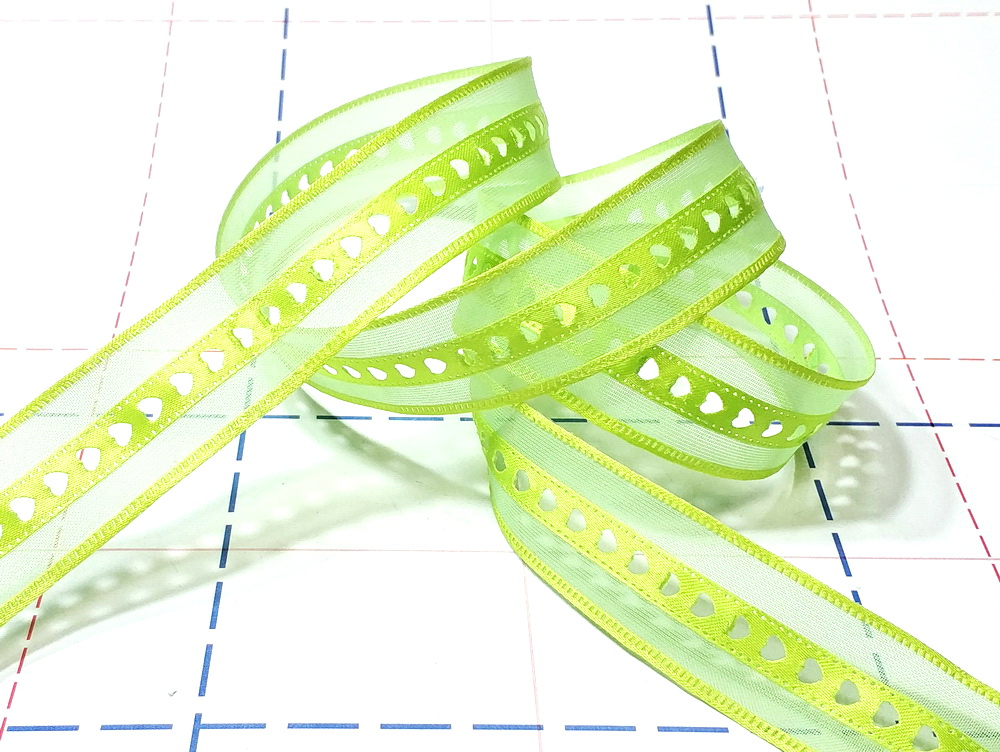 - 12 Лента декоративная 25мм Сердце-2 18,3м/боб Салатовый