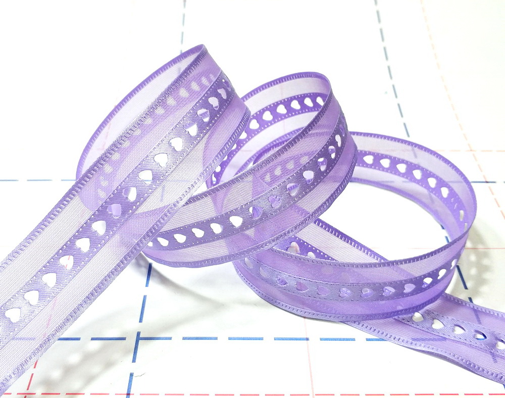 - 12 Лента декоративная 25мм Сердце-2 18,3м/боб Сиреневый