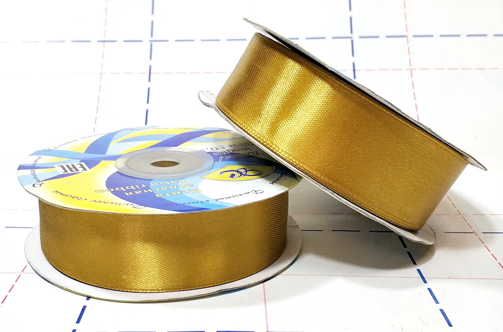 Назад 122 Лента атласная 25мм 33м (+-1м) оттенок золотистого