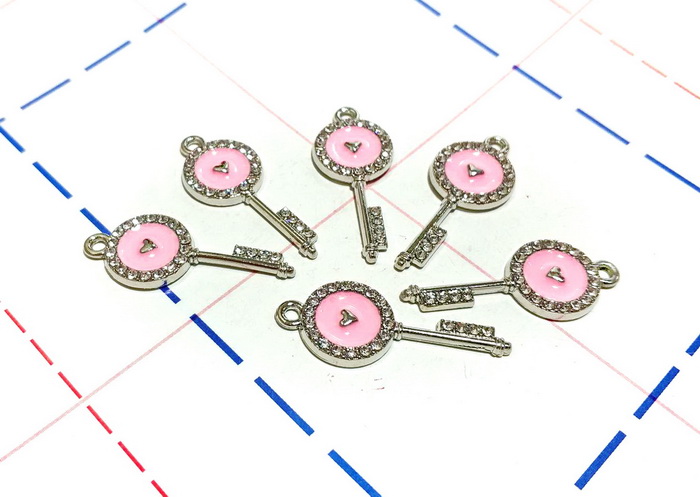 - 128 Подвеска 8*30 мм Ключик Серебро/Розовый