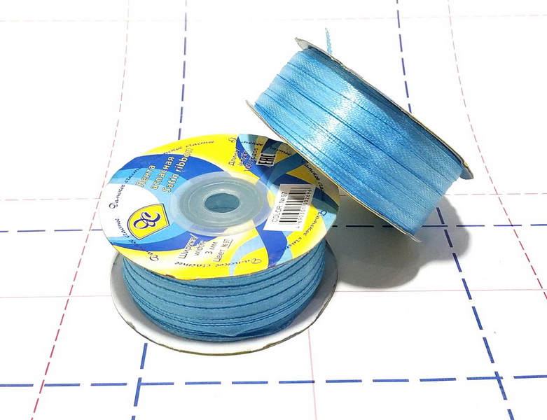 - 13 Лента атласная 3 мм 91,44 м/боб ярко-голубой