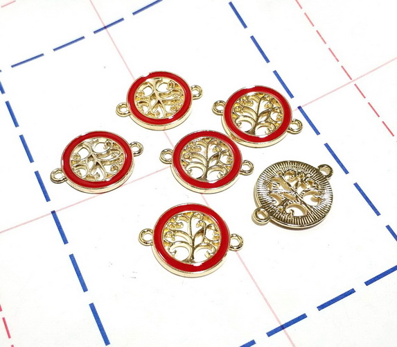 - 134 Подвеска-коннектор 25*18мм Дерево жизни Золото/Красный