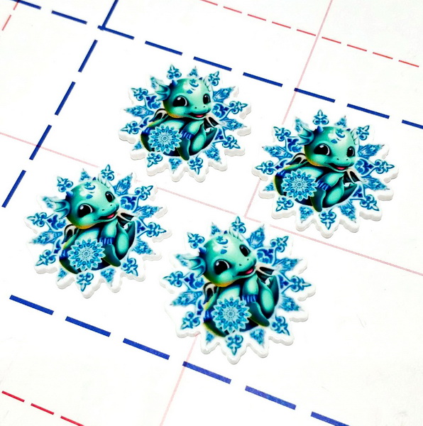 - 136 Кабошон плоский 31мм Дракончик на снежинке голубой