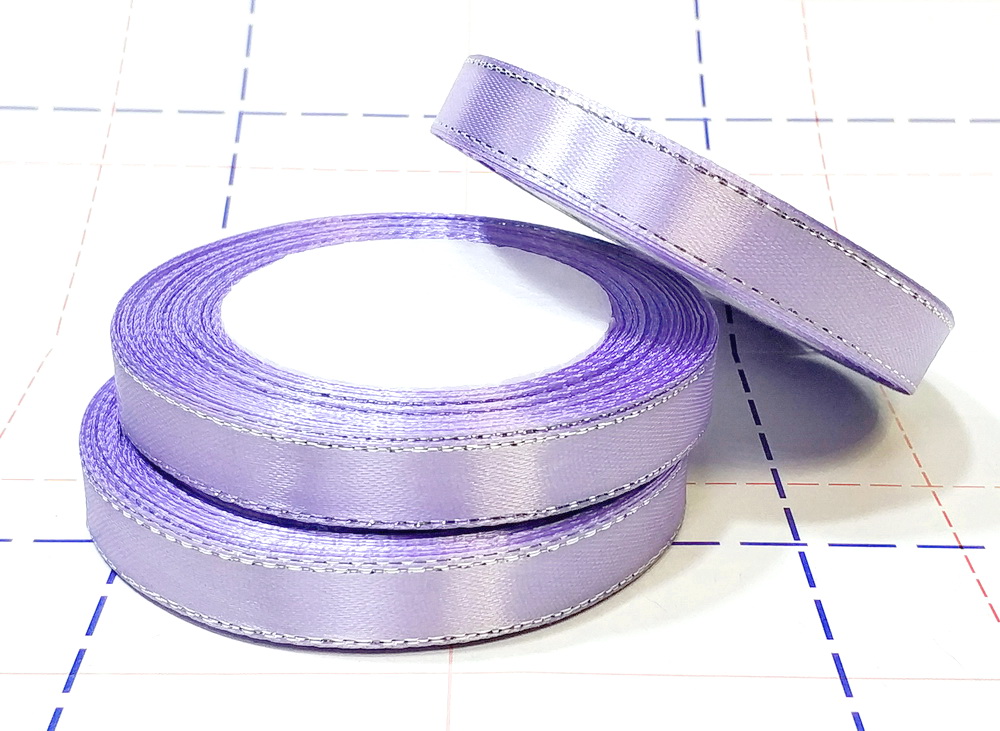 Назад 14 Лента атласная с люрексом 12мм серебро 23м/боб (+-1м) оттенок Нежно-сиреневый