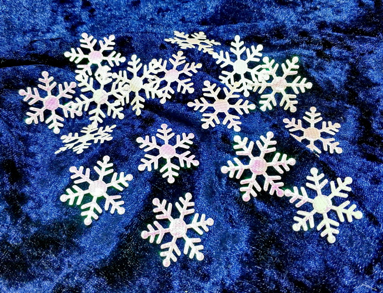 - 14 Снежинка Патч Кожзам-ткань 30мм 200шт/уп (+-5шт) Белый перламутровый