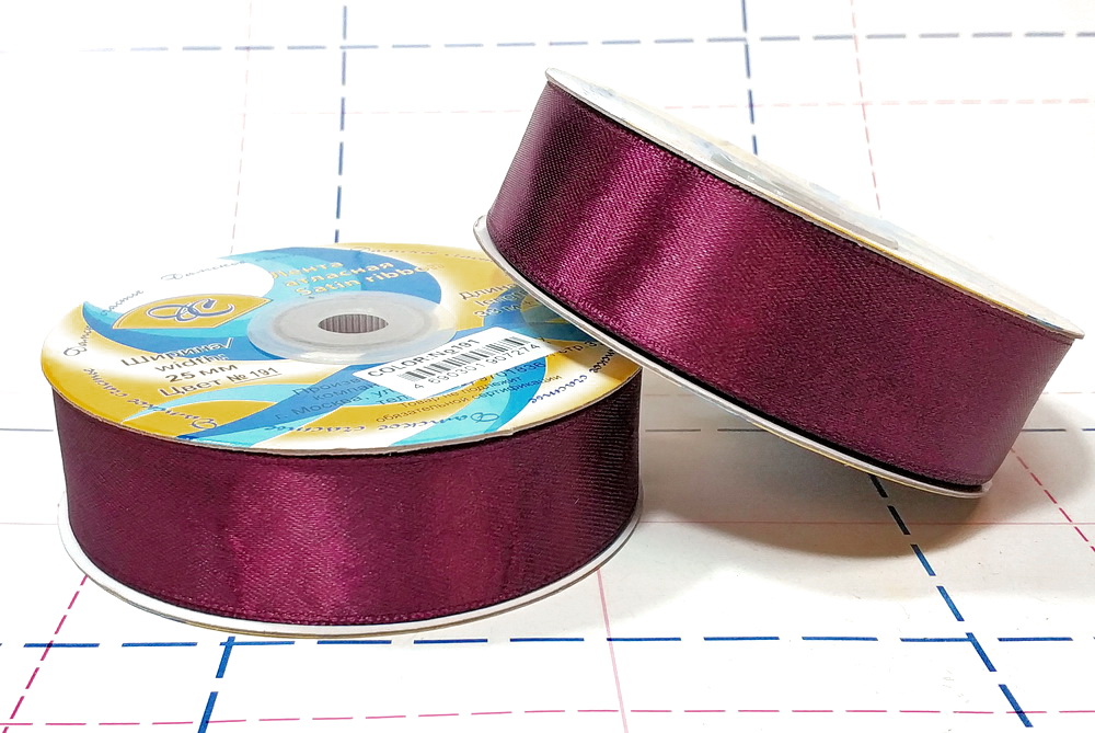Назад 141 Лента атласная 25мм 33м (+-1м) оттенок бордового