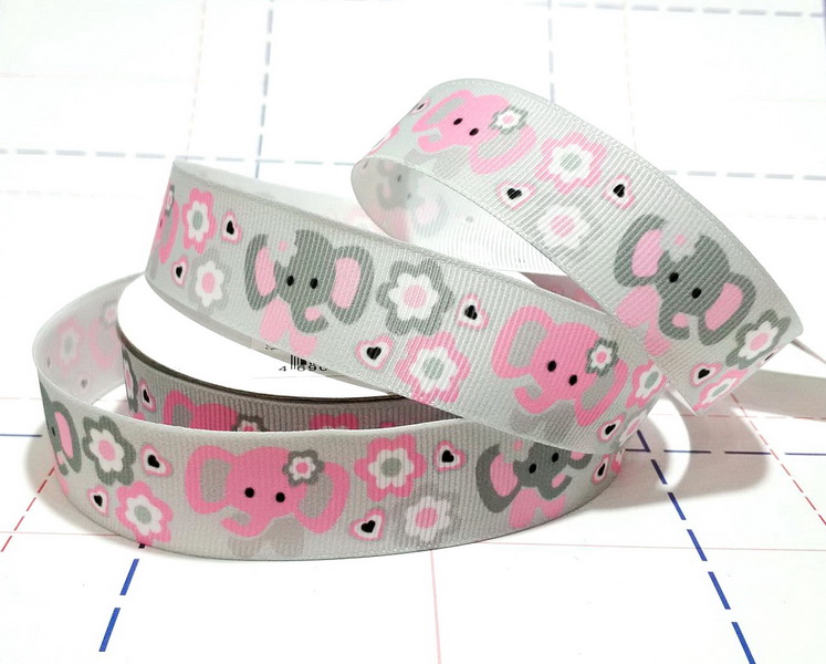 - 148 25мм Репсовая лента с рисунком 23м/боб (+-1м) Слоники Серый