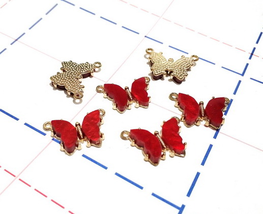 - 148 Подвеска-коннектор Бабочка 23*16 мм Золото/Красный