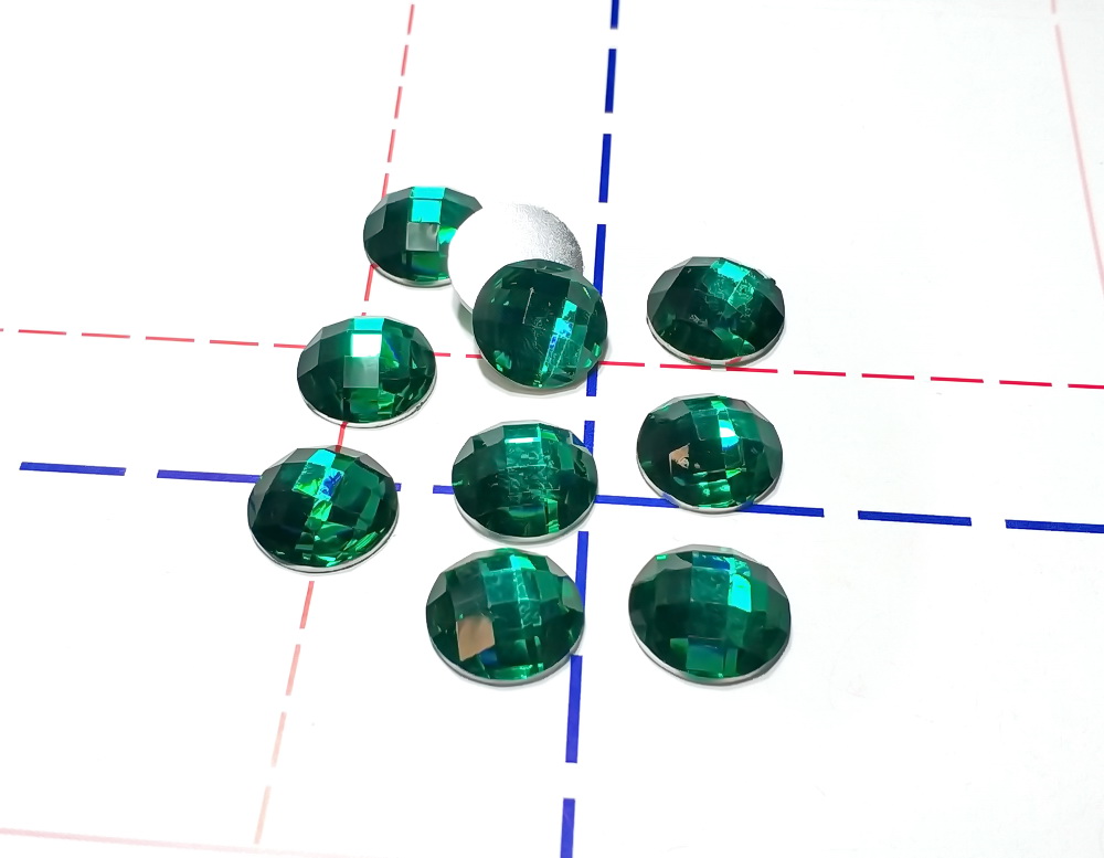 - 14мм Стразы клеевые тип Г Круг 10шт/уп Изумрудный
