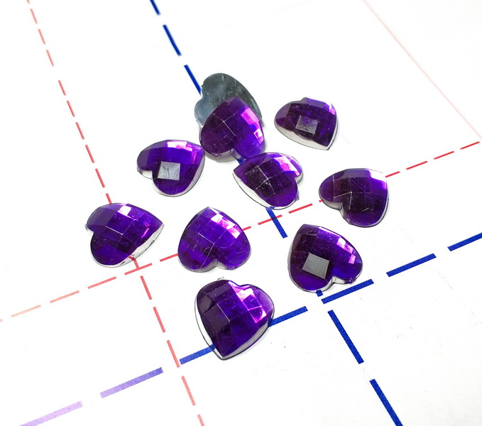 - 14мм Стразы клеевые тип Г Сердце 10шт/уп Фиолетовый