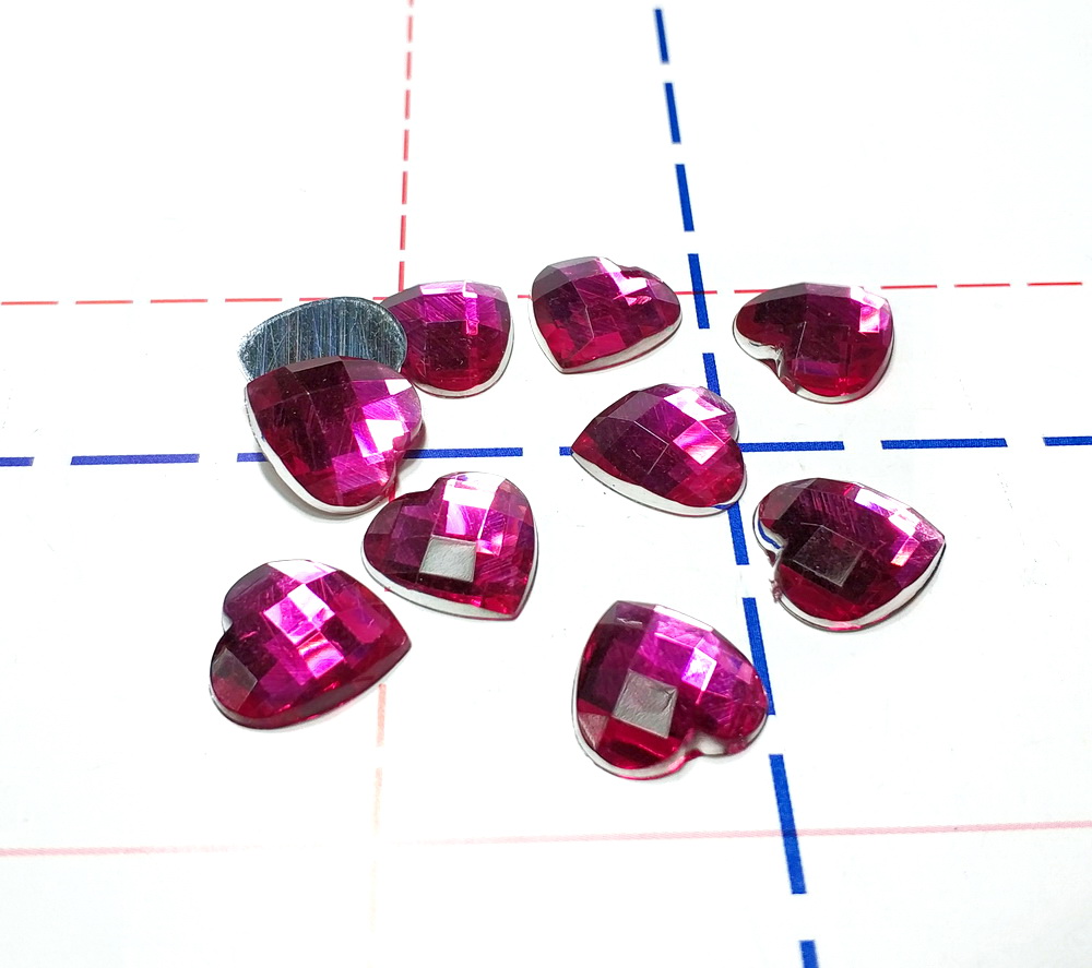 - 14мм Стразы клеевые тип Г Сердце 10шт/уп Фуксия