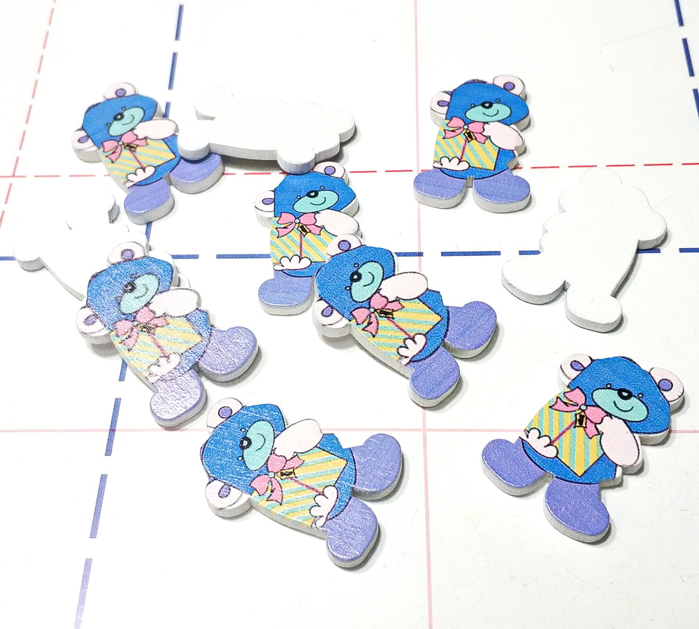 - 15 Фигурка деревянная Мишка с подарком 30мм Синий