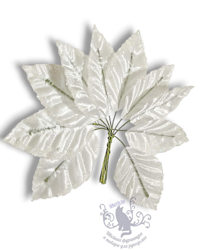 Назад №15 Листья тканевые текстурированные 3*5см 1лист белый/блестки