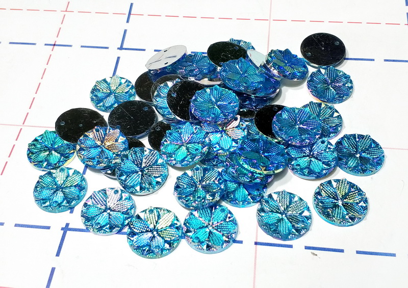 - 15 мм Круг-Цветок Страза пришивная Голубой