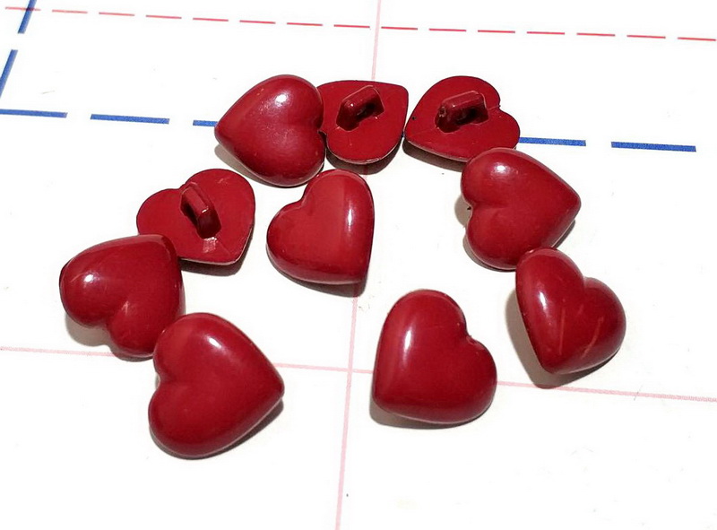 - 15 мм Пуговицы Сердце 10шт/уп Темно-красный