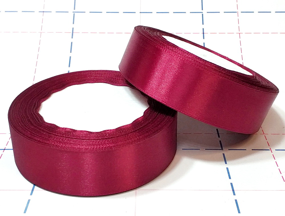 Назад 151 Лента атласная 25мм 23м (+-1м) оттенок бордового