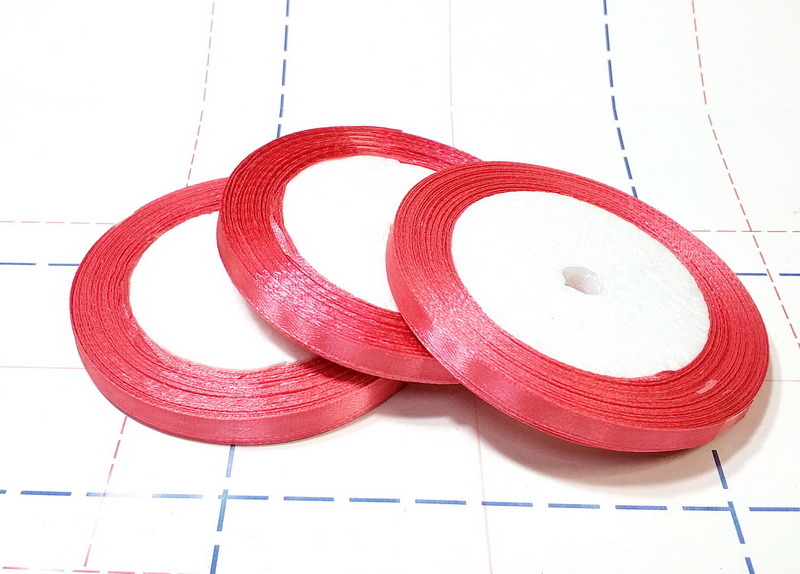 Назад 151 Лента атласная 6 мм 23м (+-1м) оттенок ярко-кораллового