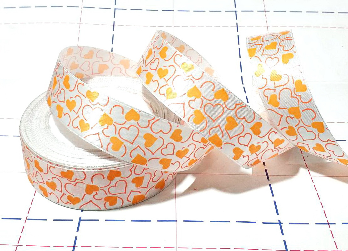 - 159 Лента атласная 25мм с рисунком 23м/боб (+-1м) Сердечки оранжевый