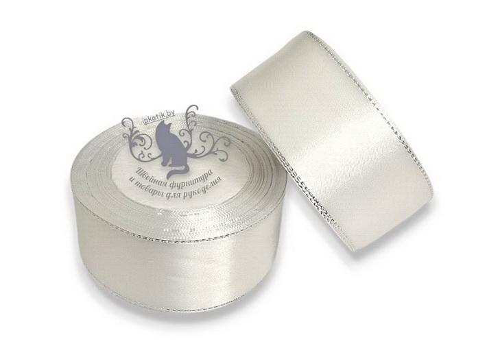 - 16 Лента атласная с люрексом 40мм серебро БОБИНА 23м/боб (+-1м) Белый