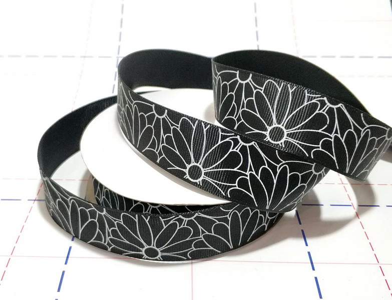 - 165 25мм Репсовая лента с рисунком 23м/боб (+-1м) Гербера Черный/белый