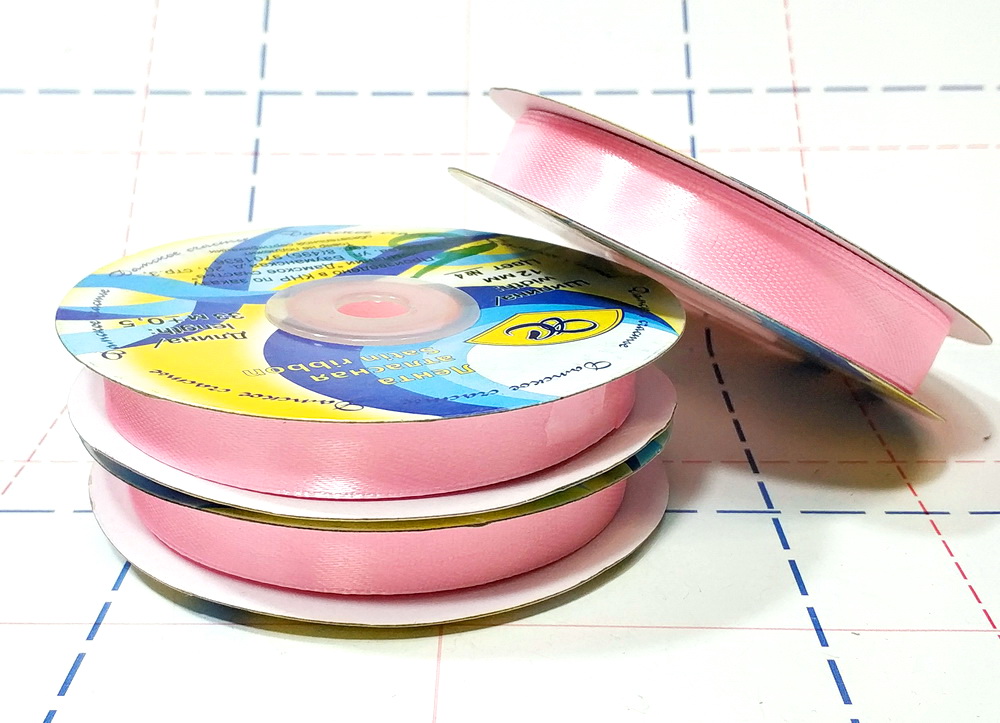 Назад 167 Лента атласная 12 мм 33 м/боб (+-1м) оттенок светло-розового