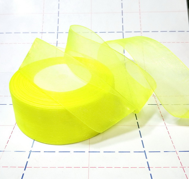 Назад 17 Лента Органза 40мм БОБИНА 45,7м/боб (+-1м) Лимон флюор