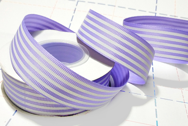 - 173 25мм Репсовая лента с рисунком 18,3м (+-1м) Полосы Сиреневый/белый