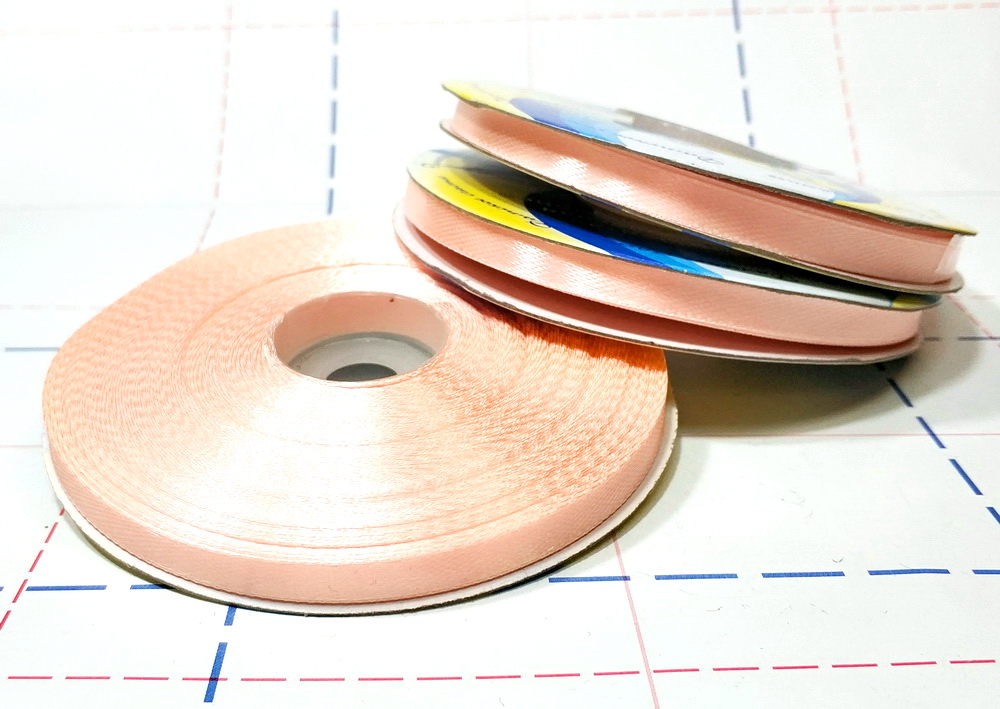 Назад 182 Лента атласная 6 мм 33м (+-1м) оттенок бледно-персикового