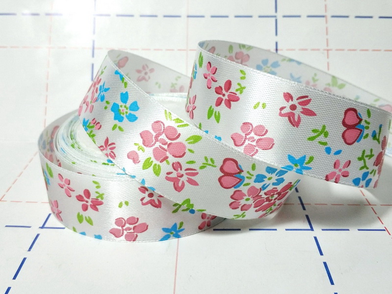 Назад 183 Лента атласная 25мм с рисунком 23м/боб (+-1м) Цветы