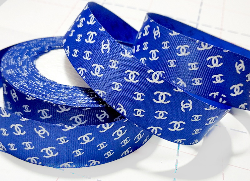 - 192 25мм Репсовая лента с рисунком 18,3м (+-1м) Шанель Синий/белый