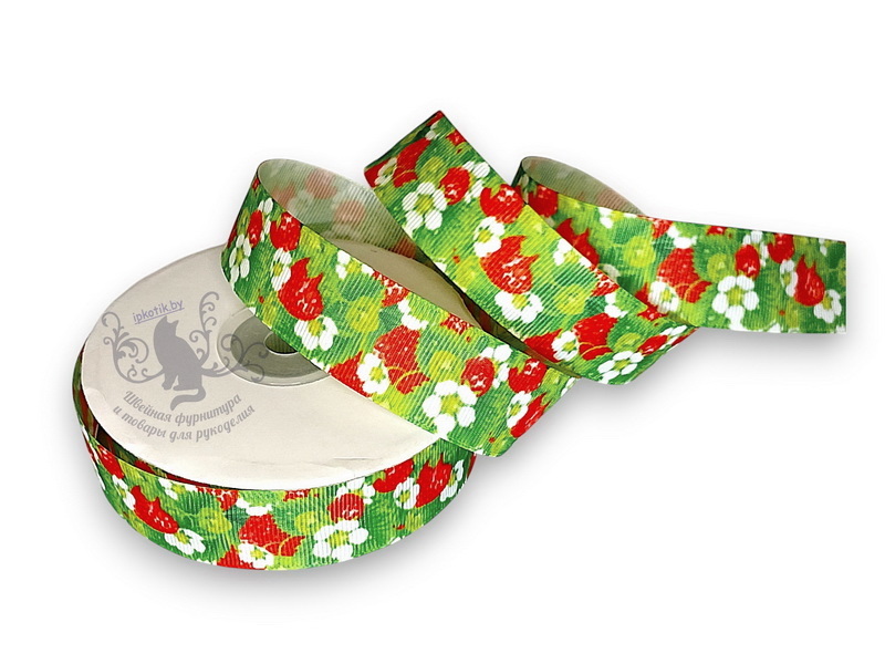 - 200 25мм Репсовая лента с рисунком 23м/боб (+-1м) Земляника