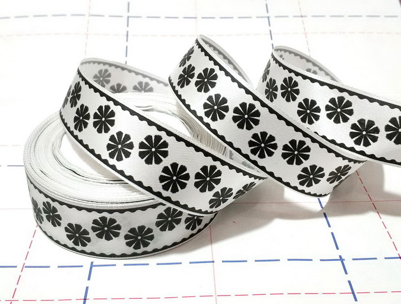 - 209 Лента атласная 25мм с рисунком 23м/боб (+-1м) Цветы черный