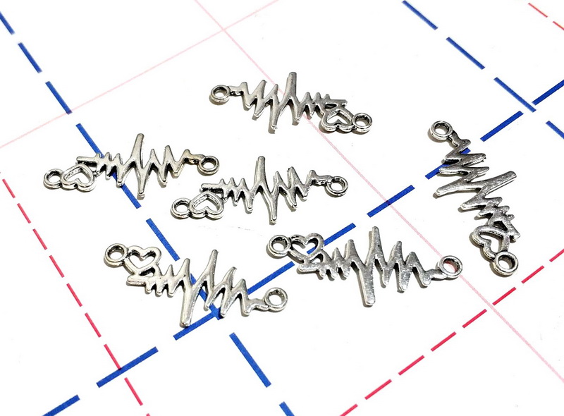 - 209 Подвеска-коннектор 14*30 мм Сердцебиение Серебро