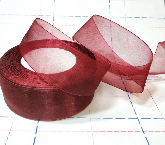 - 21 Лента Органза 40мм 45,72м/боб Бордовый