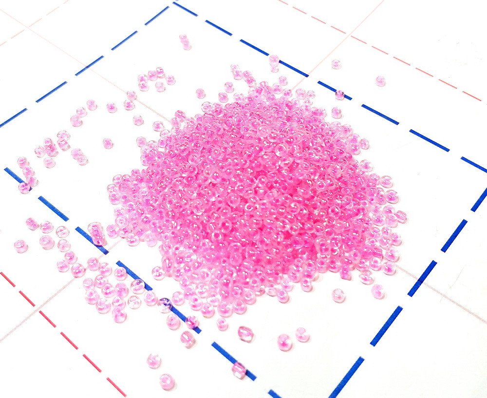 - 210 Бисер р.12 Прозрачный радужный с цветной серединой__УПАКОВКА 450(+-5)гр