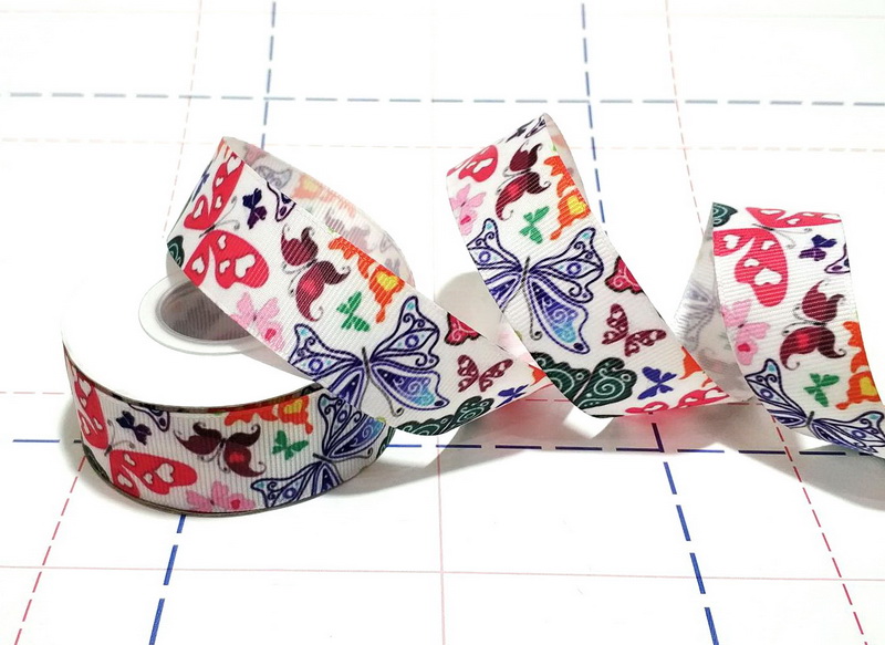 - 214 25мм Репсовая лента с рисунком 9,1м/боб (+-0,3м) Бабочки