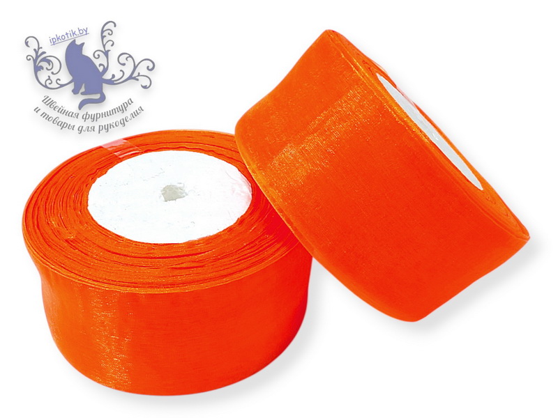 Назад 22 Лента Органза 50мм БОБИНА 45,7м/боб (+-1м) Ярко-оранжевый