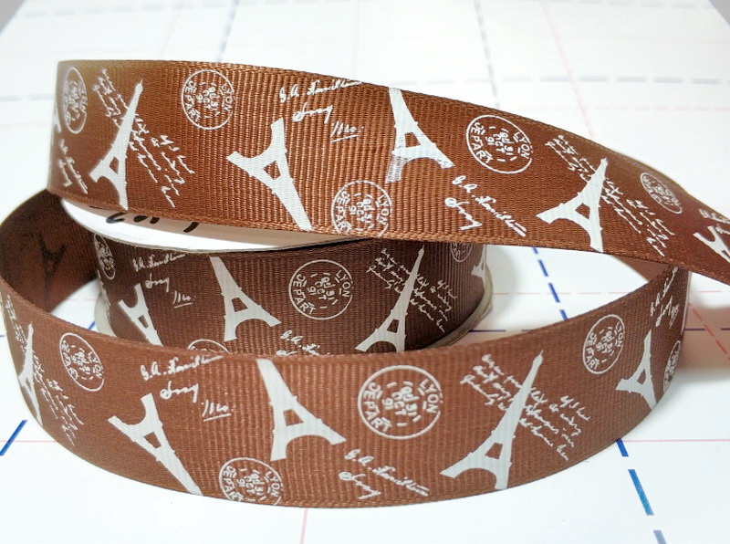 - 228 25мм Репсовая лента с рисунком 18,3м (+-1м) Париж Коричневый
