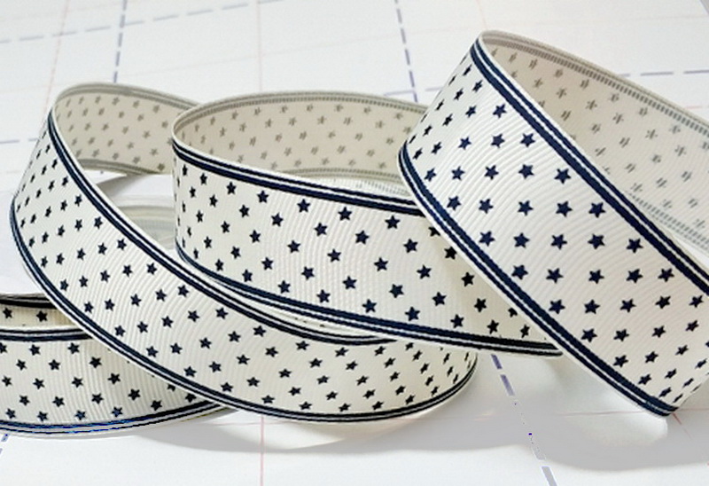 Назад 231 25мм Репсовая лента с рисунком 18,3м (+-1м) Звездочки Молочный/темно-синий