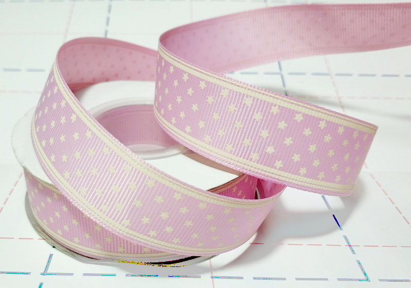 Назад 232 25мм Репсовая лента с рисунком 18,3м (+-1м) Звездочки Розово-сиреневый/молочный