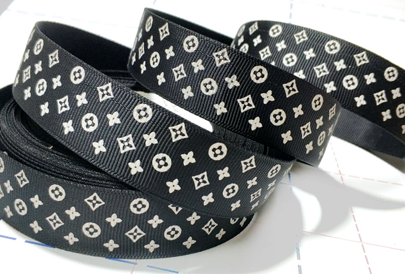 Назад 236 25мм Репсовая лента с рисунком 18,3м (+-1м) ЛуиВитон Черный/белый