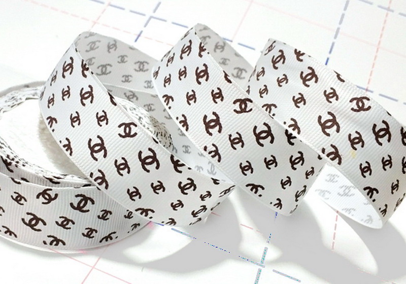 - 243 25мм Репсовая лента с рисунком 18,3м (+-1м) Шанель Белый/коричневый