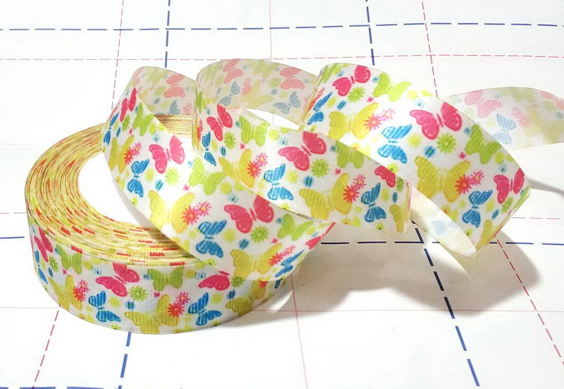 - 243 Лента атласная 25мм с рисунком 23м/боб (+-1м) Бабочки