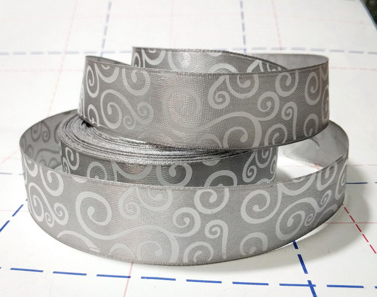 Назад 248 Лента атласная 25мм с рисунком 23м/боб (+-1м) Витушки серый/белый