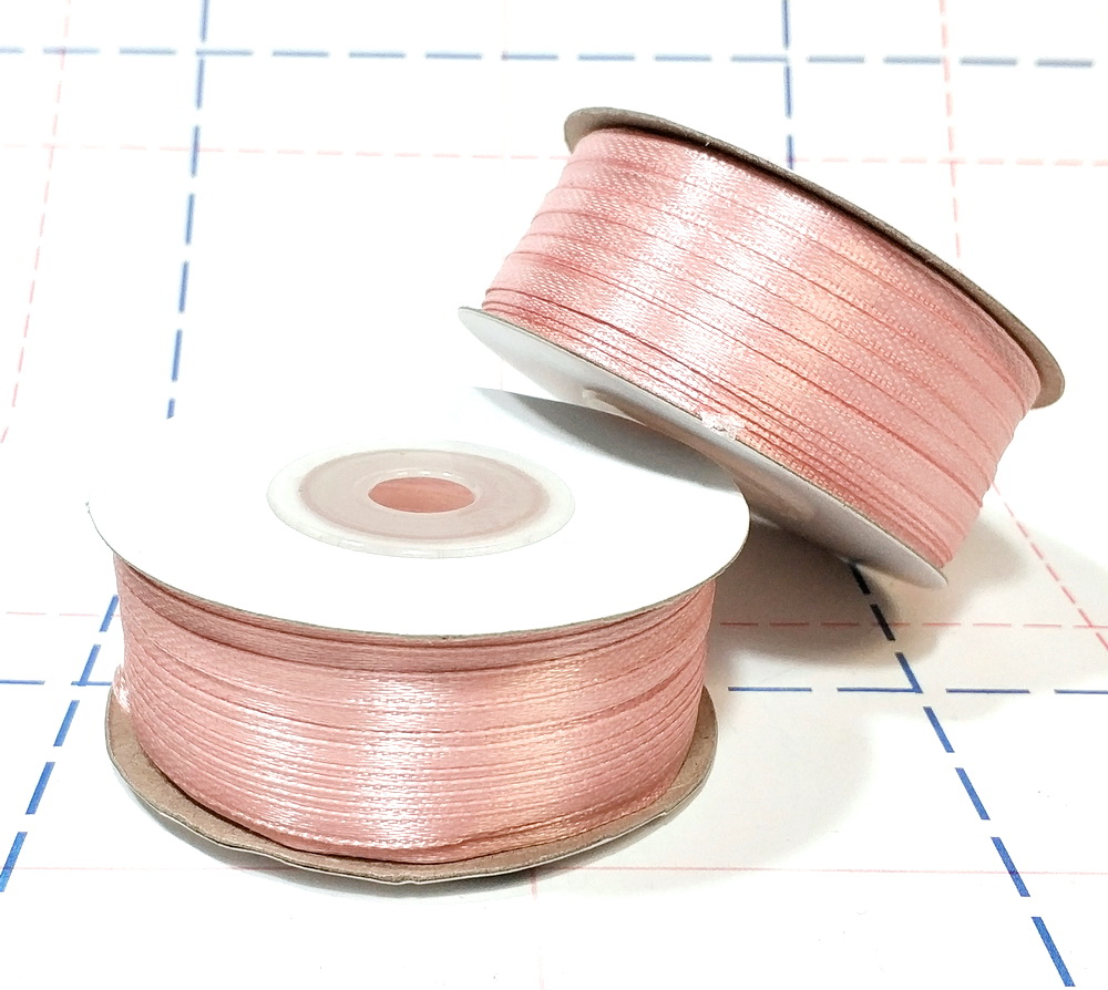 Назад 25 Лента атласная 3 мм 82м/боб Пепельно-розовый