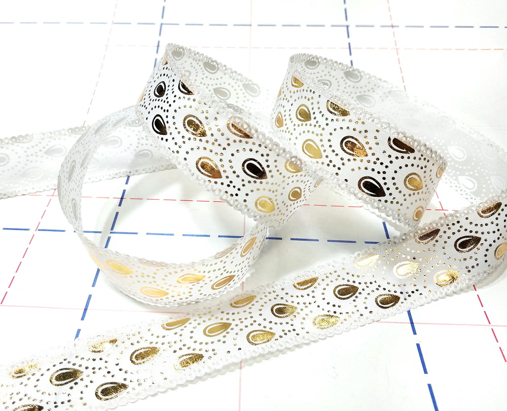 - 25 Лента декоративная 25мм Капля 45,72м/боб Белый